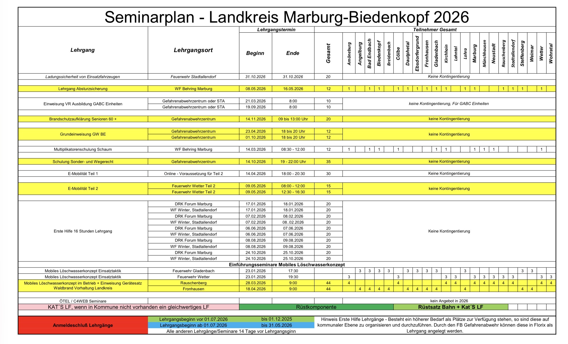 Lehrgangsplan auf Kreisebene 2026