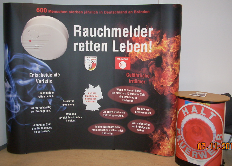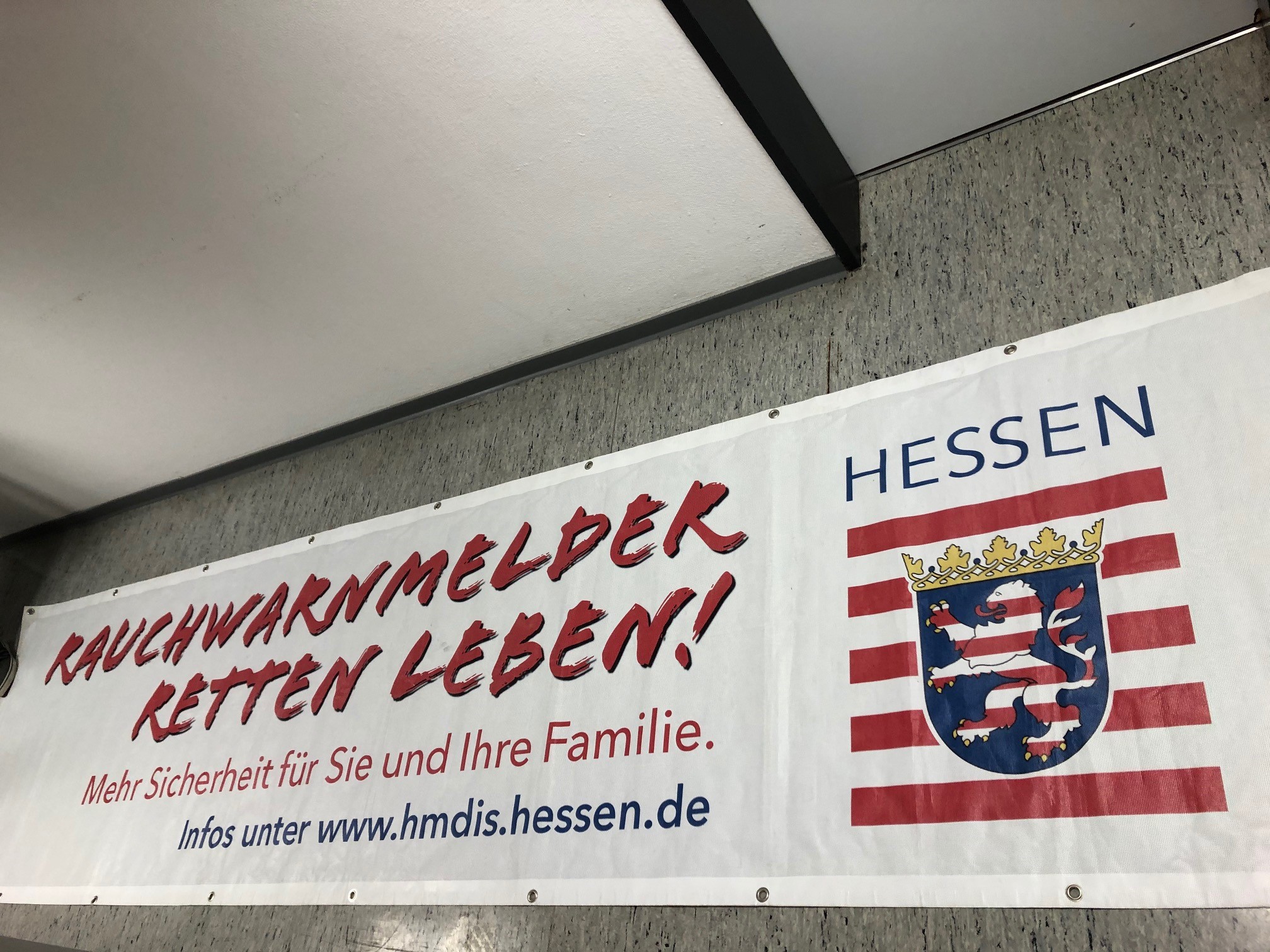 Kampagne "Rauchwarnmelder retten Leben" des Landes Hessen Höhe 100 cm, Breite 400 cm