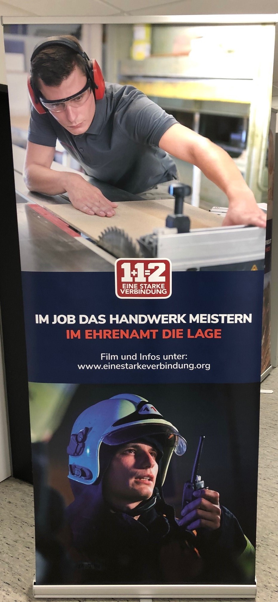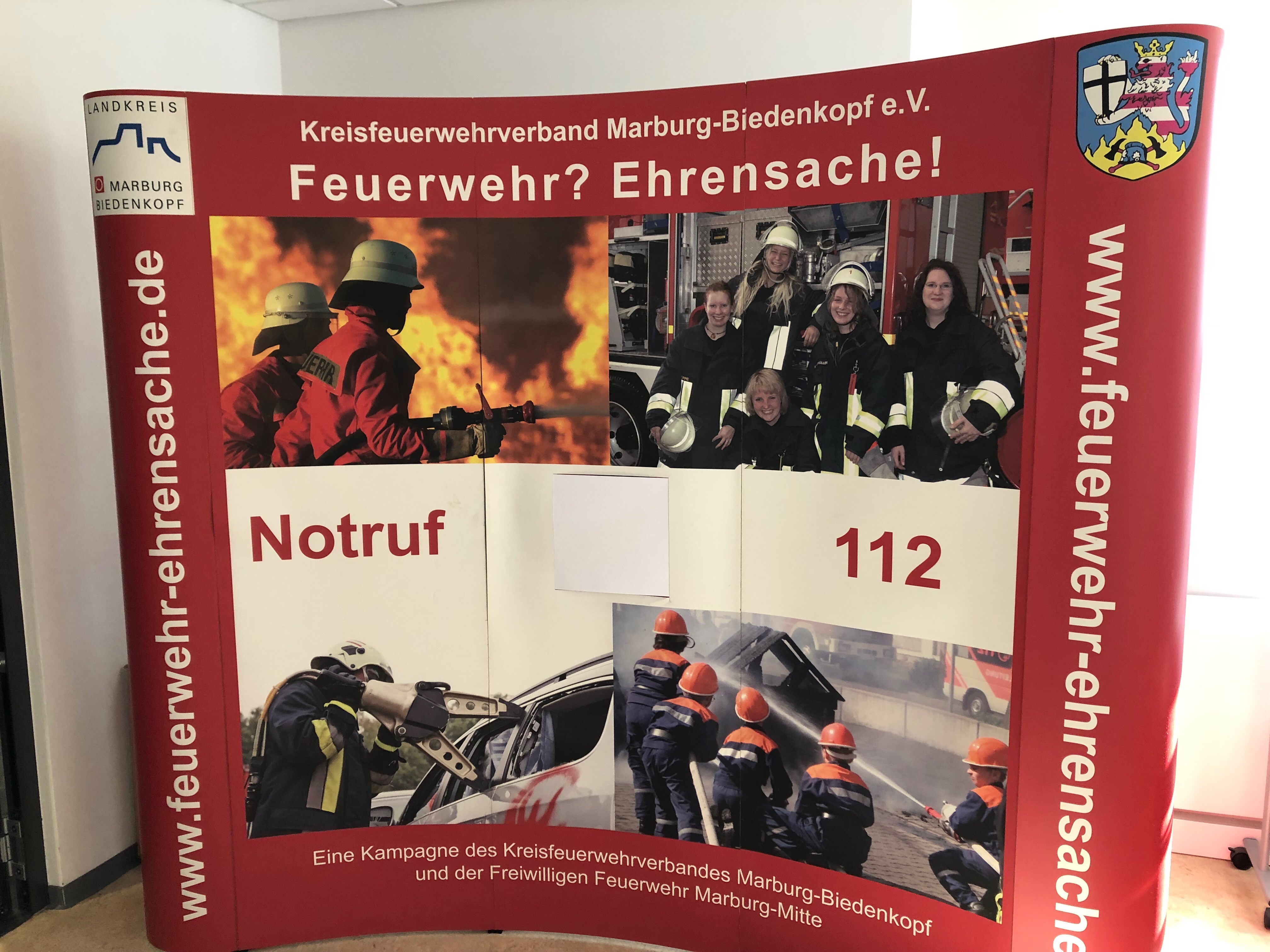Messewand Ehrensache des KFV. Kampagne des Kreisfeuerwehrverbands Marburg-Biedenkopf und der Freiwilligen Feuerwehr Marburg-Mitte